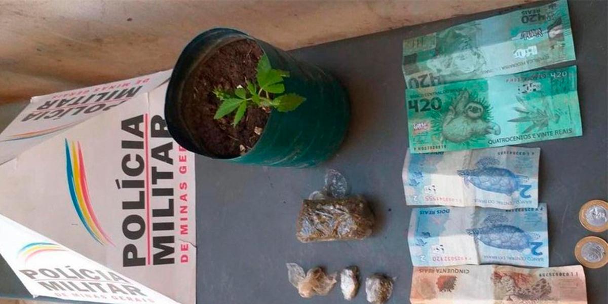 Os policiais foram para o local onde o suspeito morava temporariamente após a denúncia. Ao chegarem, afirmam terem encontrado um “pé de maconha, um embrulho grande contendo um tablete e duas porções da droga”, além de “outra porção de maconha e R$ 56”.